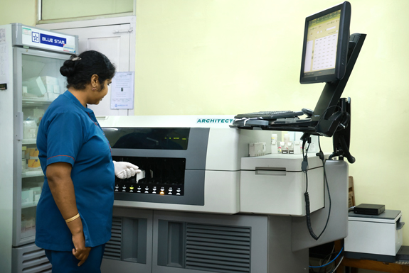 The clinical laboratory is located on the ground floor of the Chavara block and the academic section is located on the 3rd floor of the medical college block. The molecular laboratory is also located on the 3rd floor of the medical college block.