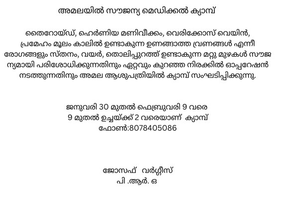 Read Moreഅമല മെഡിക്കല് കോളേജ് കമ്മ്യൂണിറ്റി മെഡിസിന് വിഭാഗം തൃശ്ശൂര...