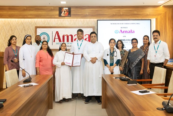 തൃശ്ശൂർ: കാർമൽ കോളേജ് (ഓട്ടോണമസ്) മാളയും, അമല ഇൻസ്റ്റിറ്റ്യൂട്ട് ഓഫ് മെഡിക്കൽ സയൻസസ് തൃശ്ശൂരും തമ്മിലുള്ള അക്കാദമിക്–ഗവേഷണ സഹകരണം ശക്തിപ്പെടുത്തുന്നതിനായി കൈകോർത്തു പ്രവർത്തിക്കാൻ ധാരണയായി. ധാരണാപത്രം അമല ഇൻസ്റ്റിറ്റ്യൂട്ട് ഓഫ് മെഡിക്കൽ സയൻസസ് ഡയറക്ടർ ഫാ ജൂലിയസ് അറക്കലും കാർമൽ കോളേജ് പ്രിൻസിപ്പൽ ഡോ. സിസ്റ്റർ റിനി റാഫേലും തമ്മിൽ ധാരണപത്രം കൈമാറി.ഗവേഷണ മേഖലയിൽ ഇരുസ്ഥാപനങ്ങൾക്കുമിടയിലെ സഹകരണ സാധ്യതകൾ വിശദീകരിച്ച് കാർമൽ കോളേജ് (ഓട്ടോണമസ്), മാളയുടെ ഡീൻ ഓഫ് റിസർച്ച് ഡോ. സിസ്റ്റർ സിഞ്ചുമോൾ തോമസ് പ്രത്യേക അവലോകനം നടത്തി. ഈ ധാരണാപത്രത്തിലൂടെ അക്കാദമിക് കൈമാറ്റം, സംയുക്ത ഗവേഷണ പ്രവർത്തനങ്ങൾ, സെമിനാറുകൾ, വർക്ക്ഷോപ്പുകൾ എന്നിവ നടപ്പാക്കാൻ സാധിക്കുമെന്ന് വക്താക്കൾ അഭിപ്രായപ്പെട്ടു. കാർമൽ കോളേജ് ഐക്യുഎസി കോർഡിനേറ്റർ മിസ്. മേരി ഫിലിപ്പ്, അമല മെഡിക്കൽ കോളേജ് അസോസിയേറ്റ് ഡയറക്ടർ ഫാ. ഡോ. ആന്റണി മണ്ണുമ്മേൽ, പ്രിൻസിപ്പൽ ഡോ. ബെറ്റ്സി തോമസ്, വൈസ് പ്രിൻസിപ്പൽമാരായ ഡോ. ദീപ്തി രാമകൃഷ്ണൻ, ഡോ. ലോല ദാസ്, അമല കാൻസർ റീസർച്ച് സെന്റർ ചീഫ് റീസർച്ച് അഡ്മിനിസ്ട്രേറ്റർ ഡോ. ജോബി തോമസ് കെ, സീനിയർ സയന്റിസ്റ്റുമാരായ ഡോ. കയീൻ വടക്കൻ, ഡോ. വിഷ്ണുപ്രിയ മുരളി എന്നിവർ ചടങ്ങിൽ സന്നിഹിതരായിരുന്നു.ഇരുസ്ഥാപനങ്ങൾക്കും അക്കാദമിക് മികവും ഗവേഷണ നവീകരണവും കൈവരിക്കാൻ ഈ ധാരണാപത്രം നിർണായകമായൊരു ഘട്ടമാകുമെന്ന് ചടങ്ങിൽ പങ്കെടുത്തവർ അഭിപ്രായപ്പെട്ടു.