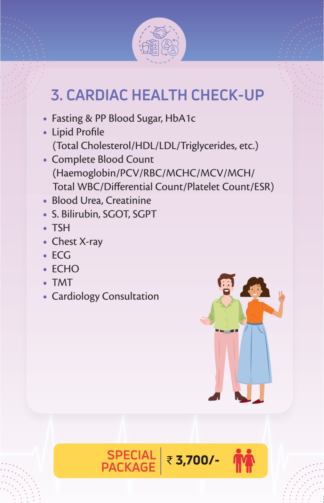 Cardiac Health Package combines an in-depth cardiac assessment and heart screening.